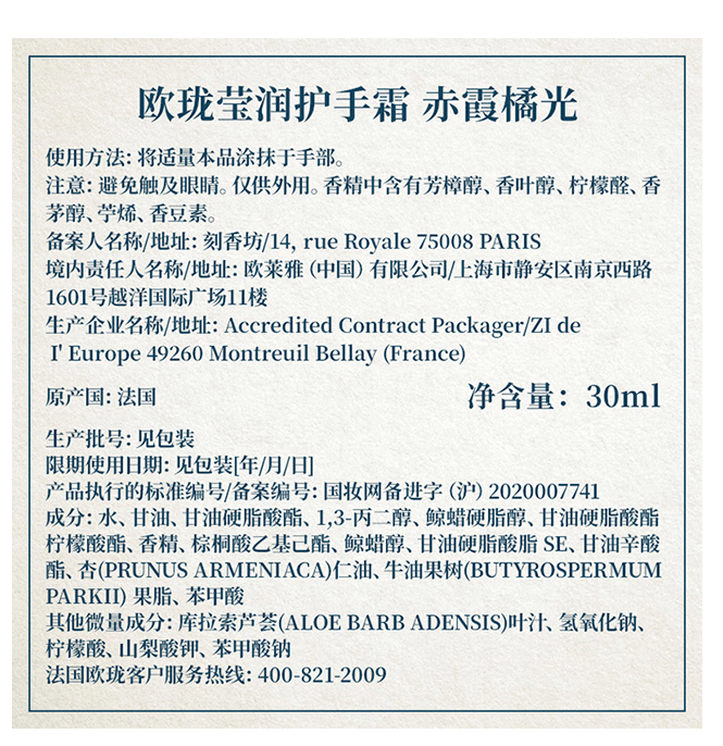 欧珑 莹润护手霜 赤霞橘光 30ml
