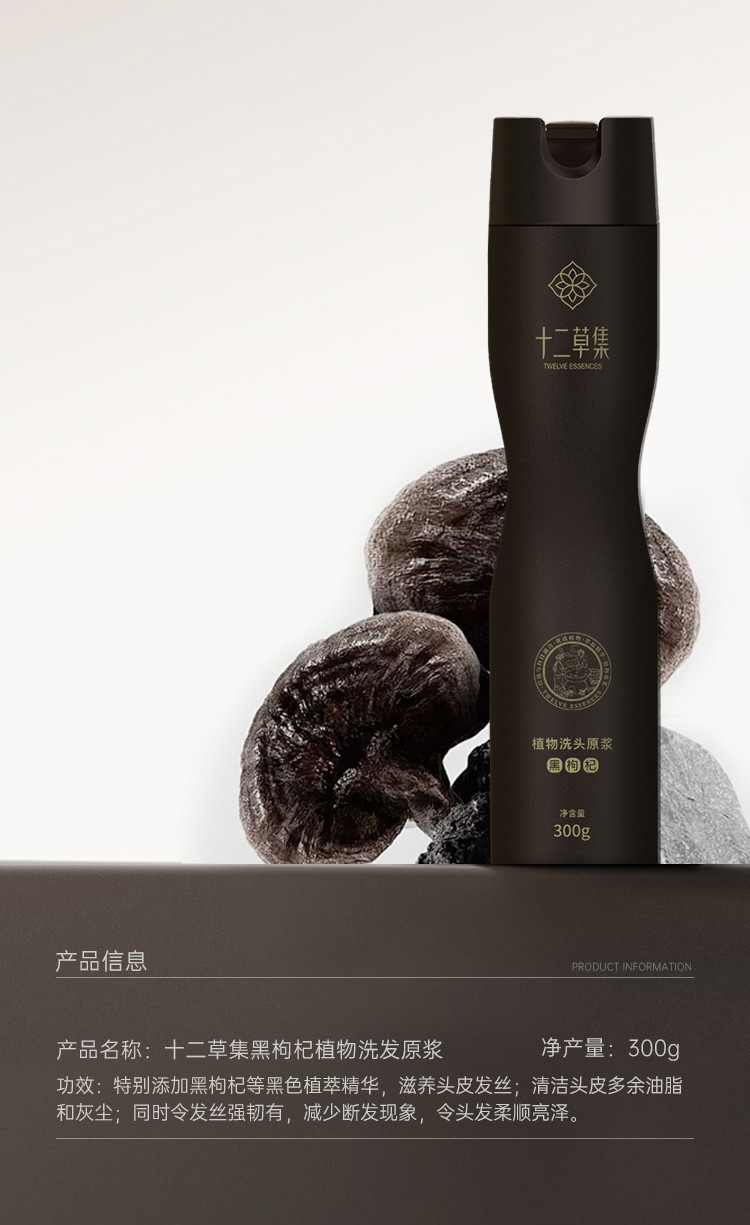 十二草集 洗发水控油蓬松持久留香洗发原浆柔顺蓬松清洁头皮护发黑枸杞