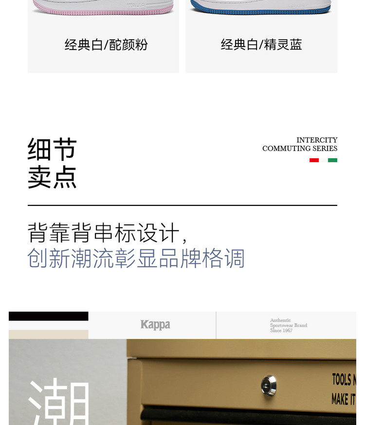 Kappa 情侣厚底小白鞋爆款春秋百搭板鞋男女低帮休闲运动鞋