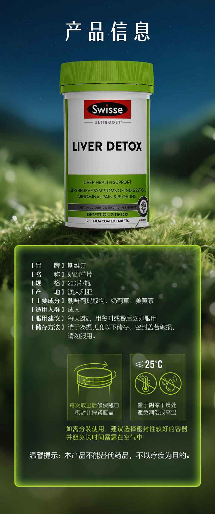 斯维诗 奶蓟草片熬夜加班双蓟草本呵护女士小心肝内在滋养少腹担澳洲进口