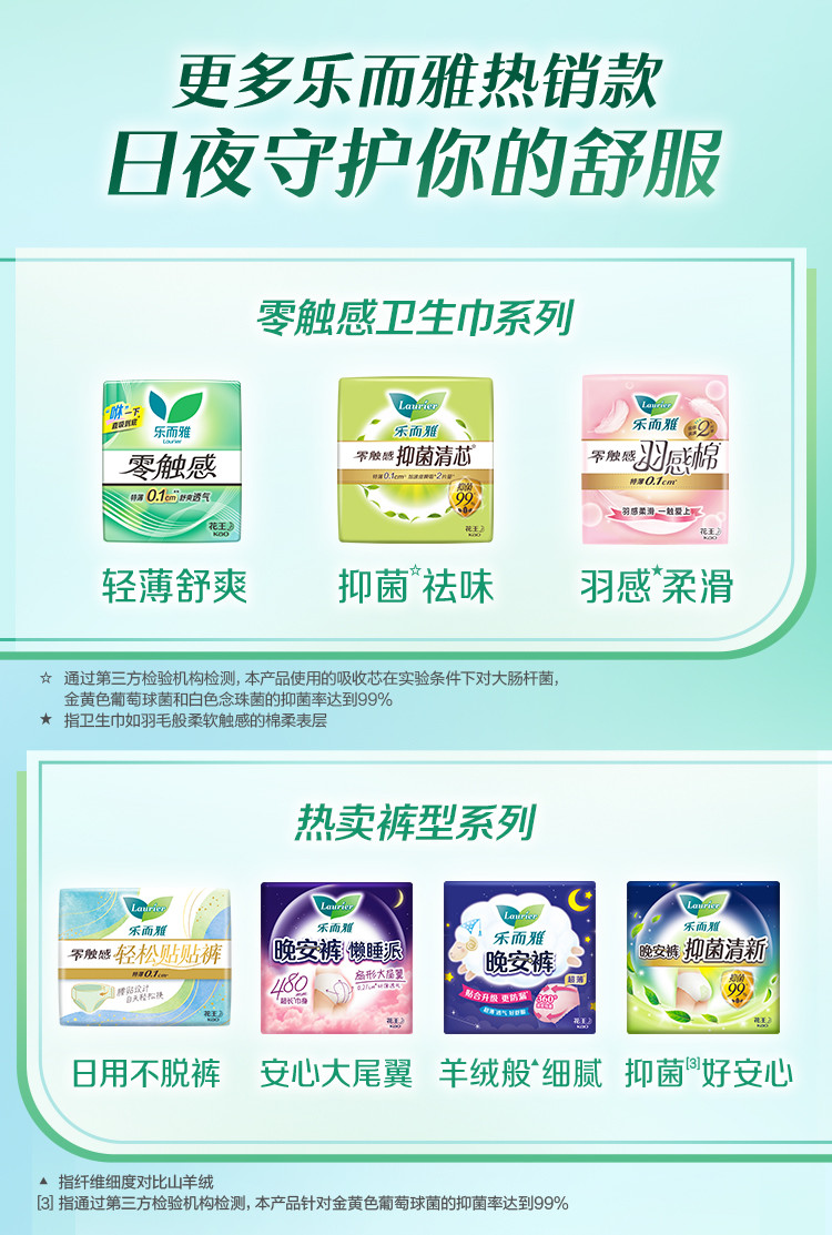 乐而雅 花王零触感系列亲肤透气日夜卫生巾丝薄姨妈巾24/48/50片