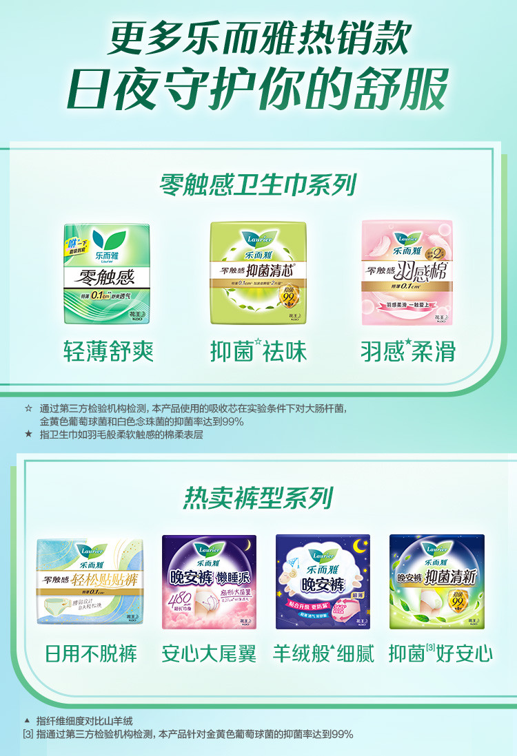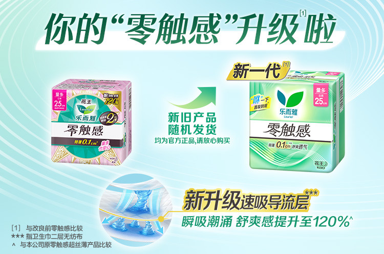 乐而雅 花王零触感系列亲肤透气日夜卫生巾丝薄姨妈巾24/48/50片