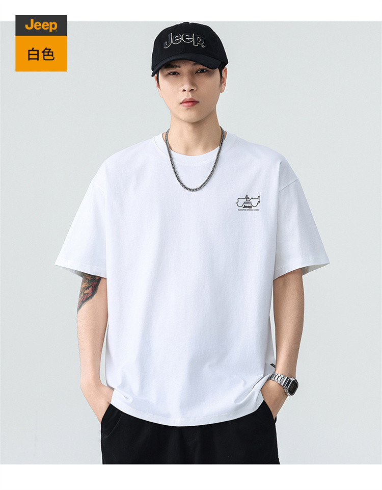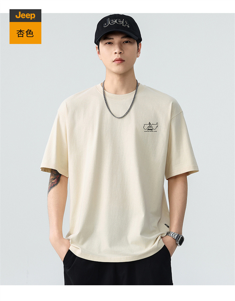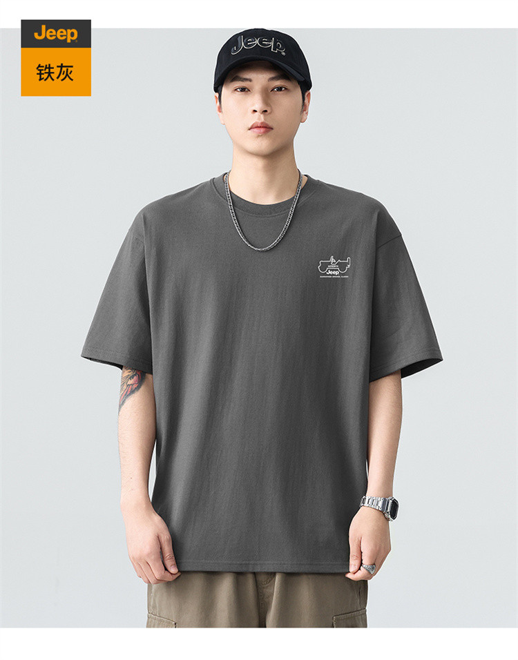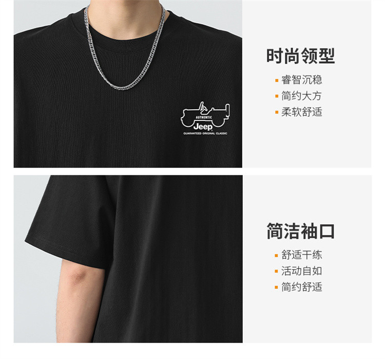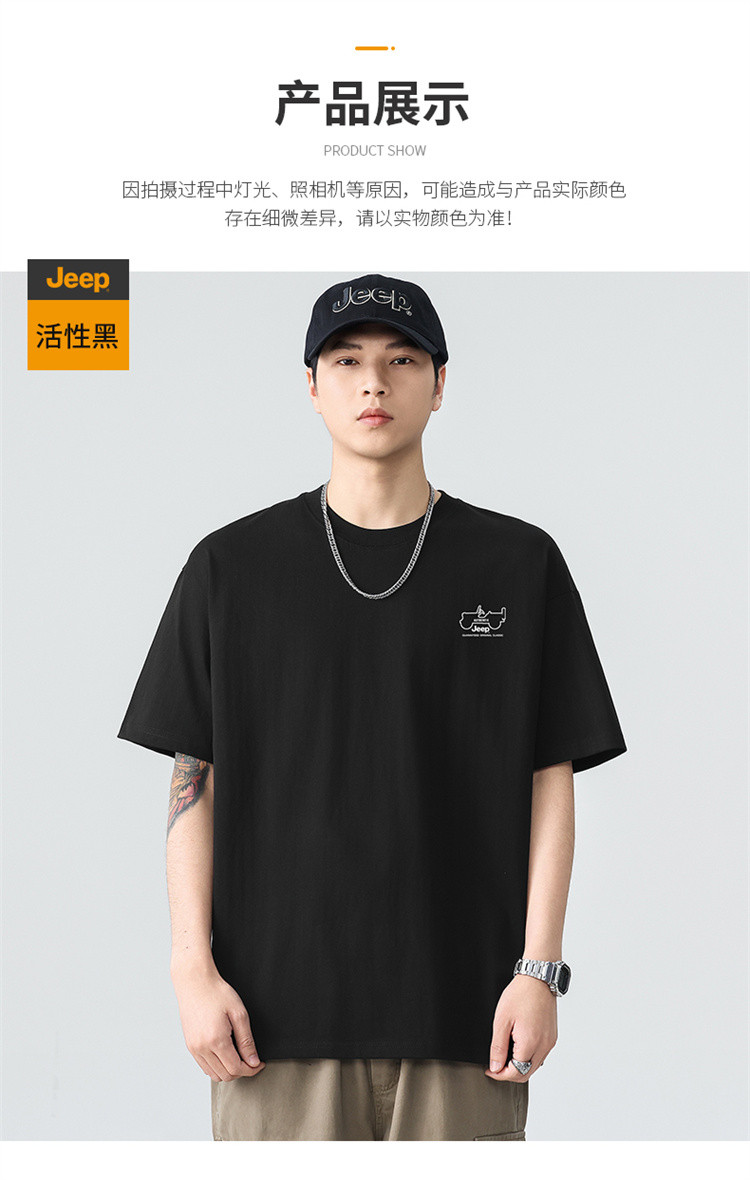 JEEP 【重磅100%棉】T恤男士短袖夏季宽松舒适运动纯棉透气上衣服