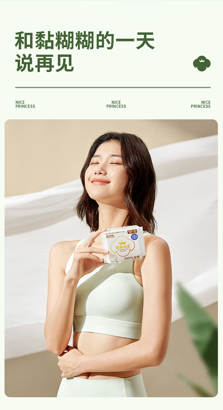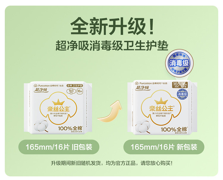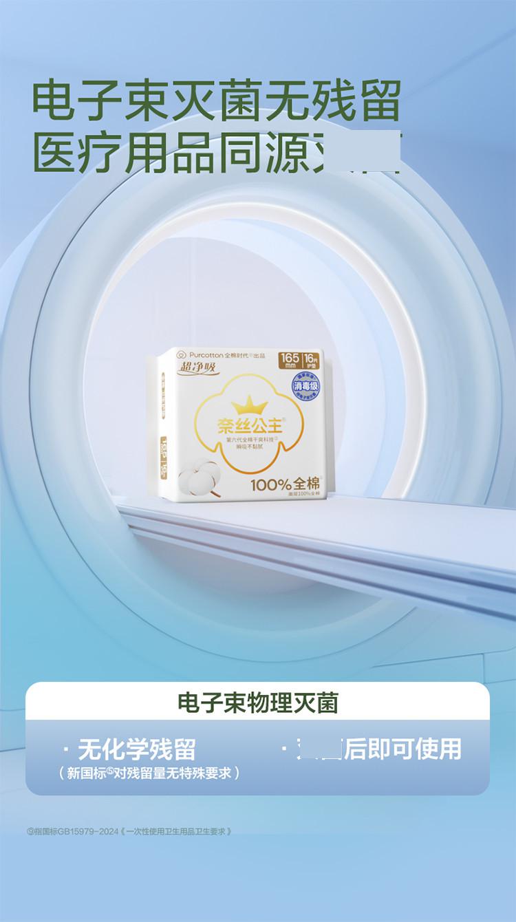 全棉时代 【奈丝公主】165mm超净吸全棉卫生巾姨妈巾护垫日用加长加宽