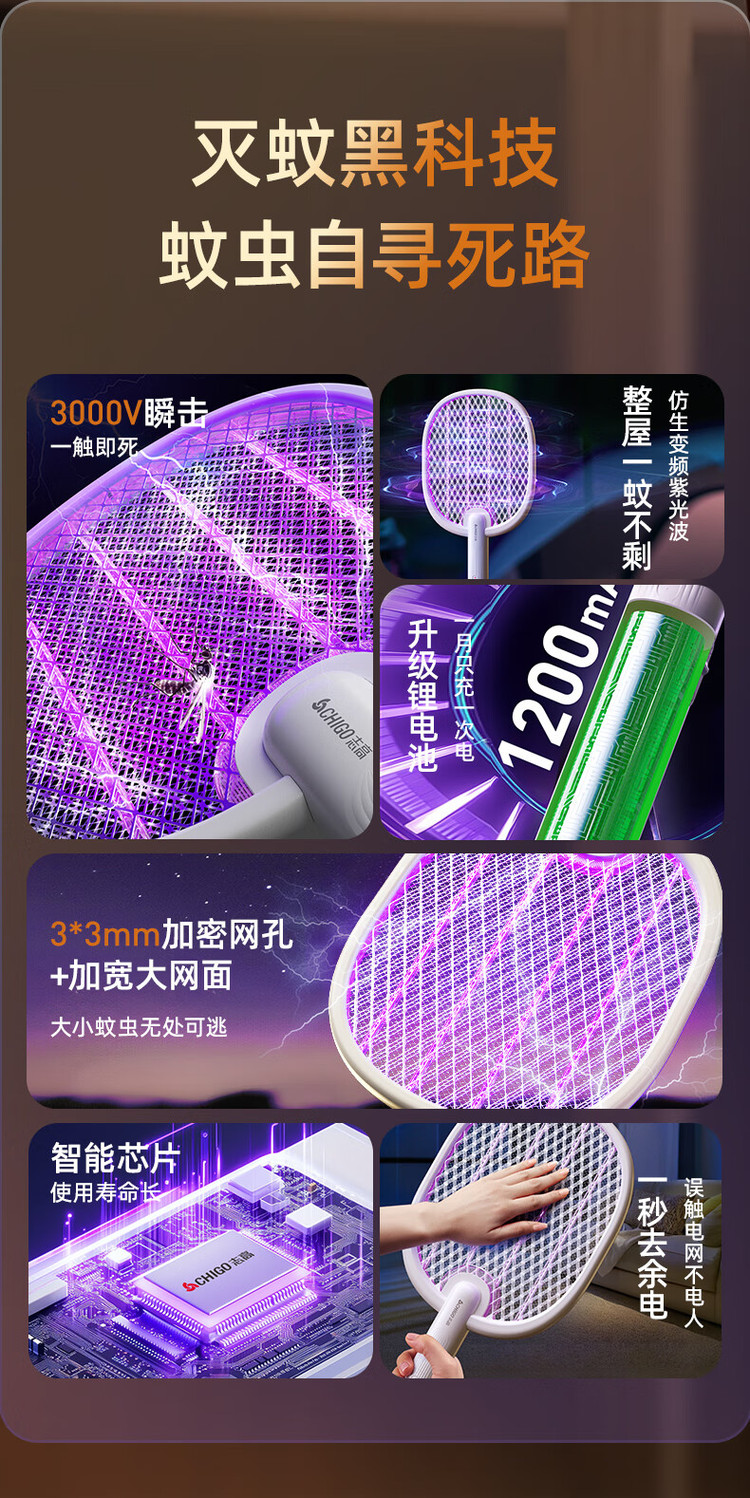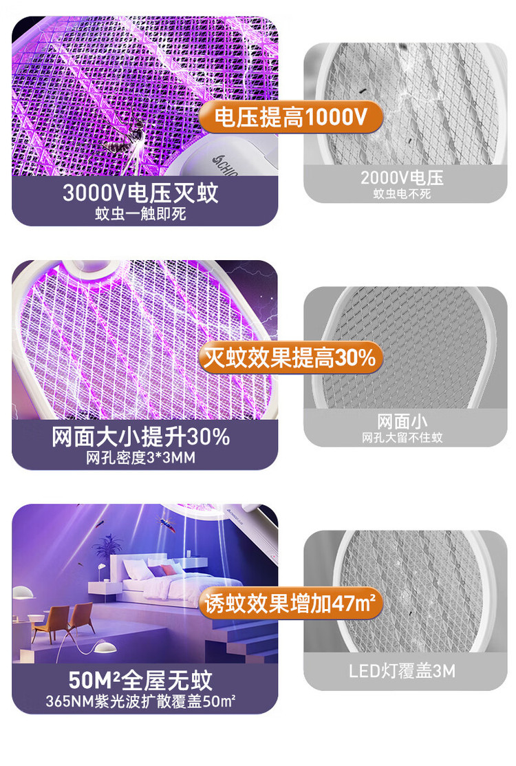志高 【强力灭蚊 持久续航】充电式LED灯照明驱蚊电蚊拍灭蚊器蚊灯