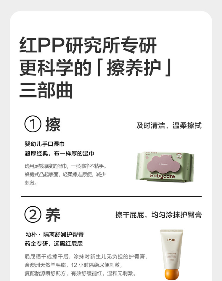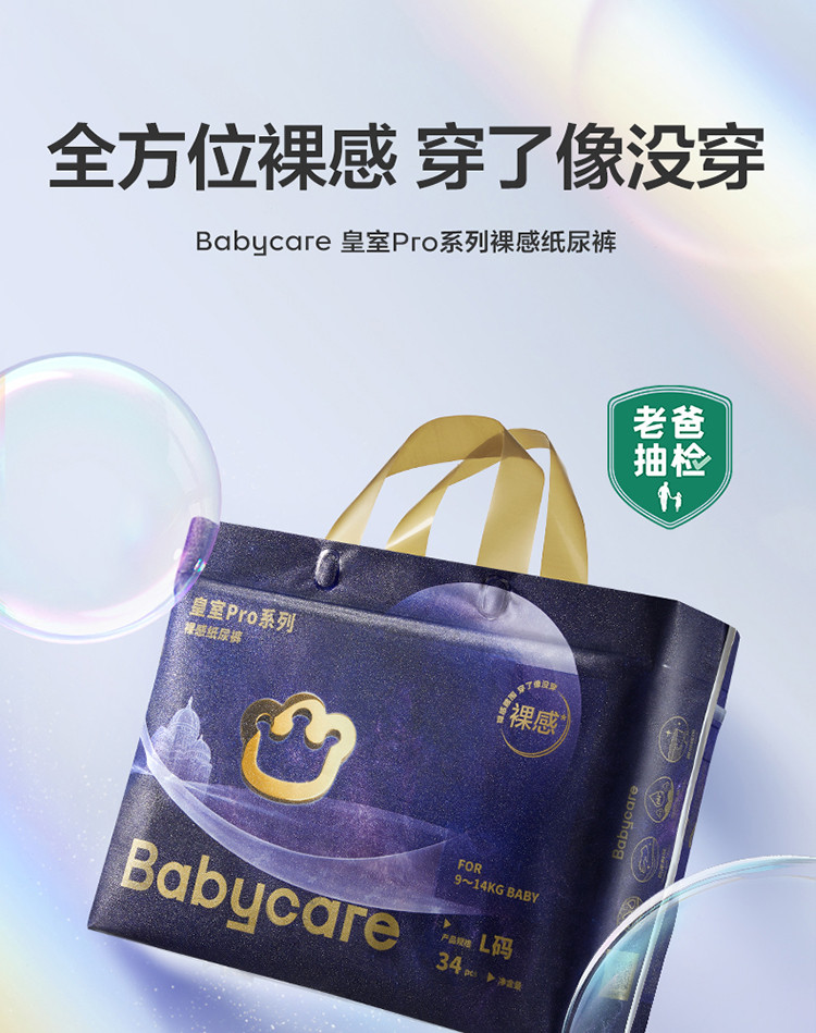 宝宝两个多月,试过多款纸尿裤,用下来觉得babycare皇室和pro用下来性价比最高,吸水性强,不反渗,都吸满了表面还很干爽,宝宝不容易红屁股,推荐购买。