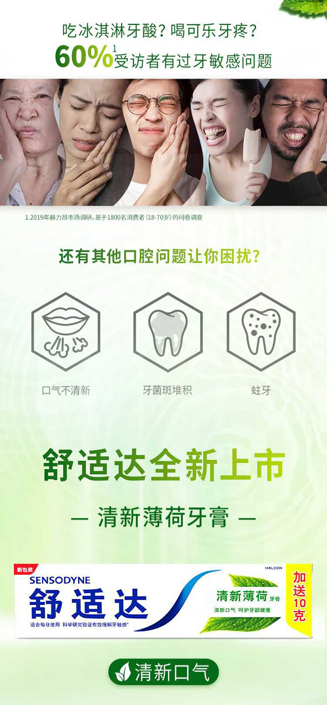 舒适达 【加量不加价】缓解牙敏感清新薄荷成人牙膏腔清洁防蛀多效臻护