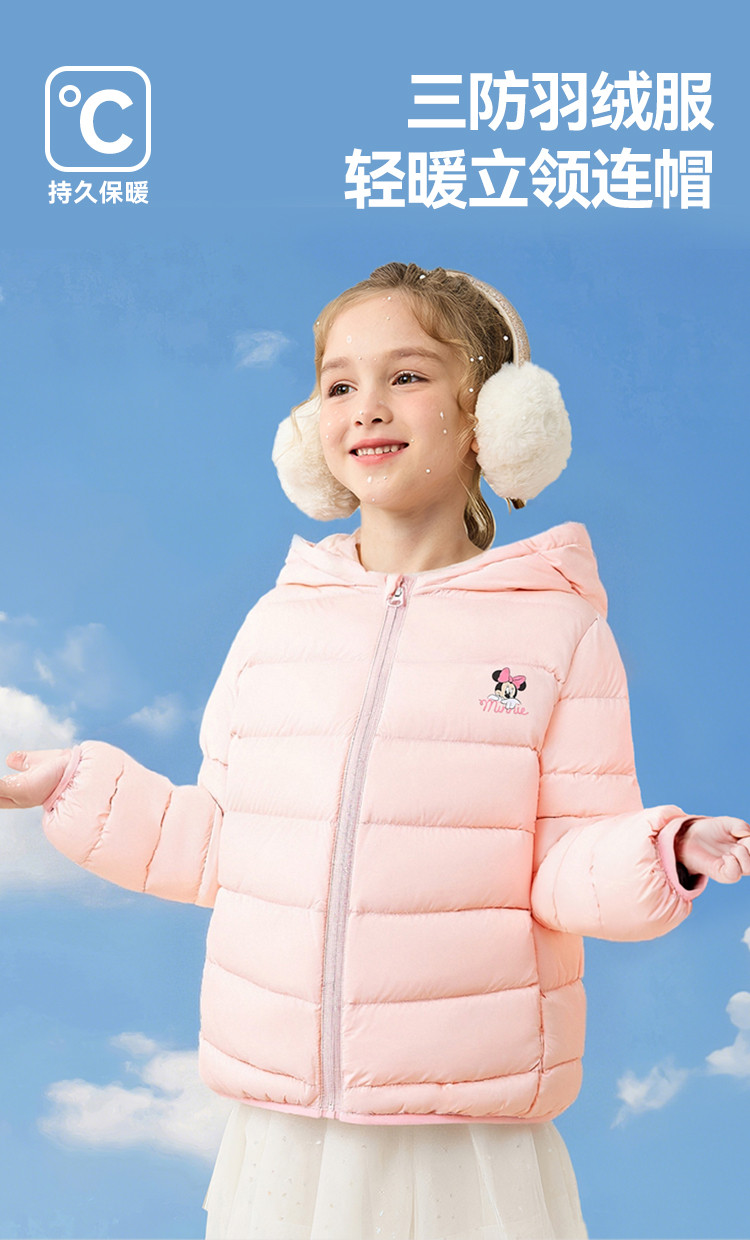 迪士尼宝宝 【实力三防】25年冬季中大童男童女童羽绒服轻薄保暖儿童羽绒服