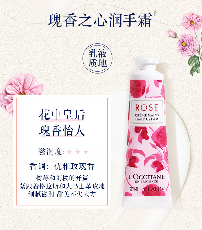 L'OCCITANE 欧舒丹【圣诞送礼】玫瑰手霜60ML套装礼盒滋润保湿防干裂