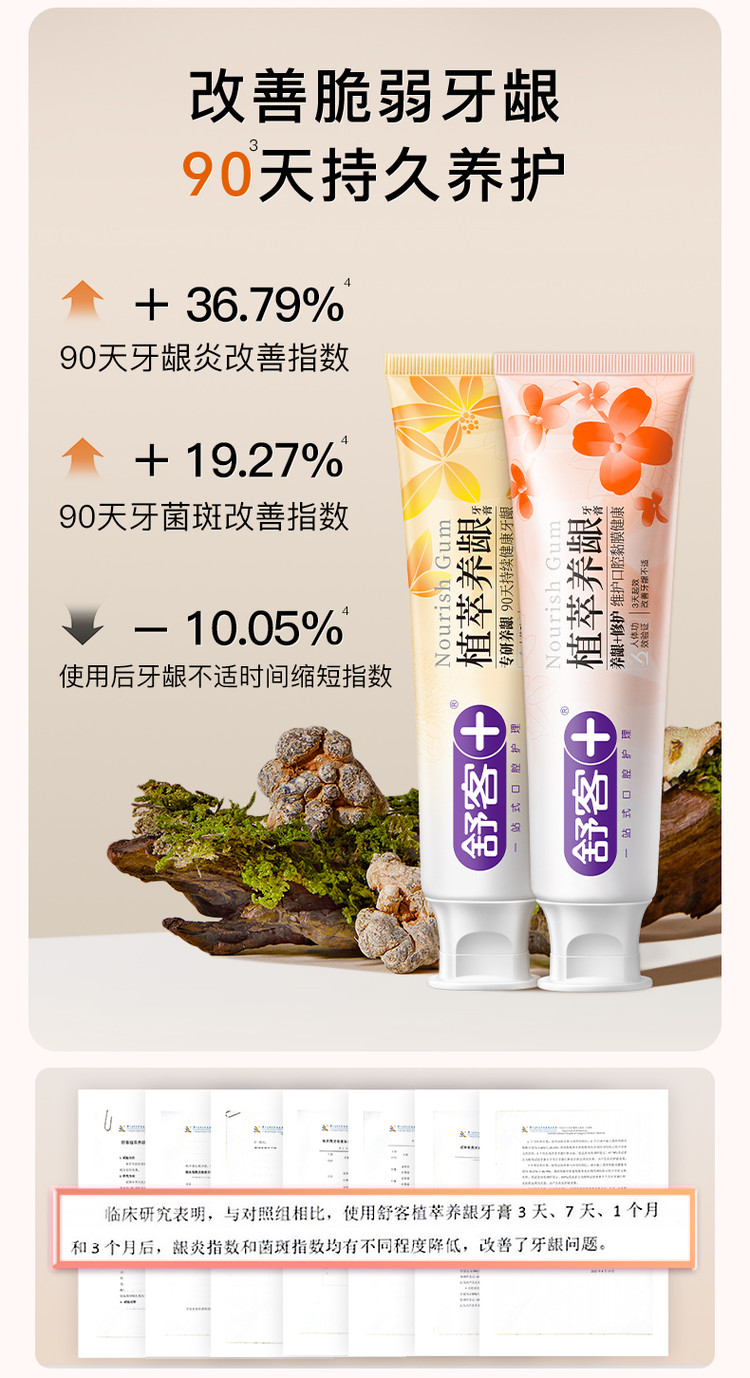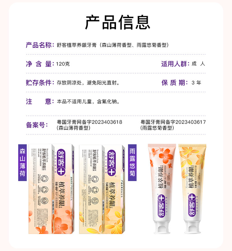 舒客 【正装试用】植萃养龈牙膏120g修复牙龈清火护龈成人多效护理