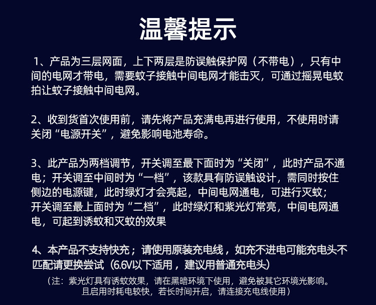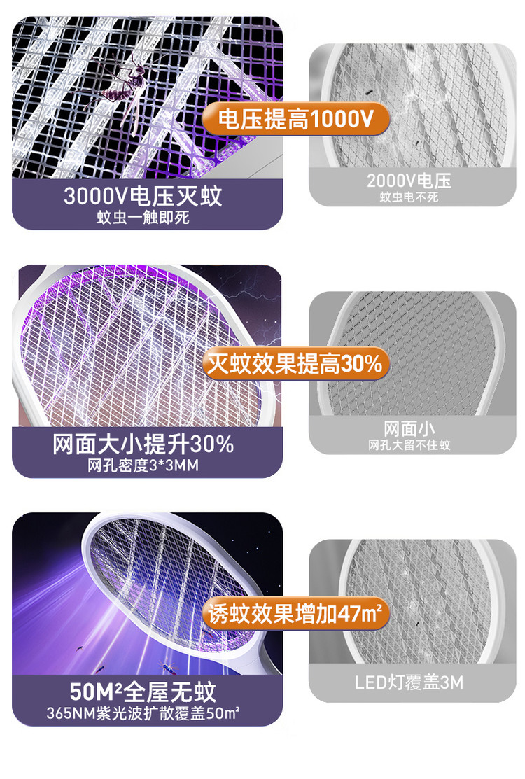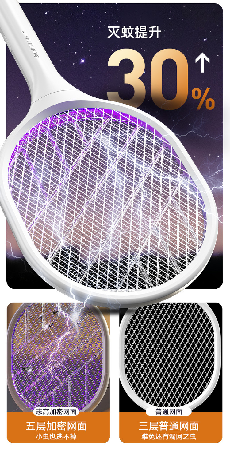 志高 【强力灭蚊 持久续航】电蚊拍充电式紫光诱蚊灭蚊拍苍蝇拍驱蚊器