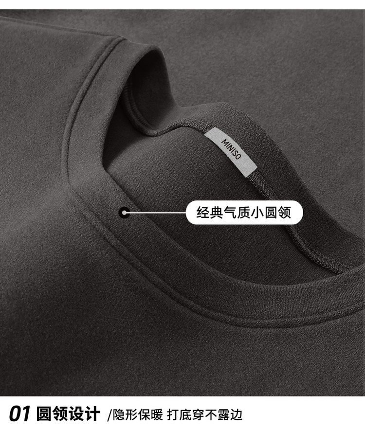 名创优品 德绒保暖冬季长袖打底衫男女同款双面磨毛圆领内衣贴身秋衣T恤