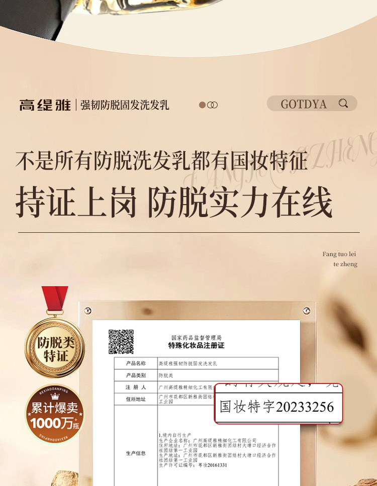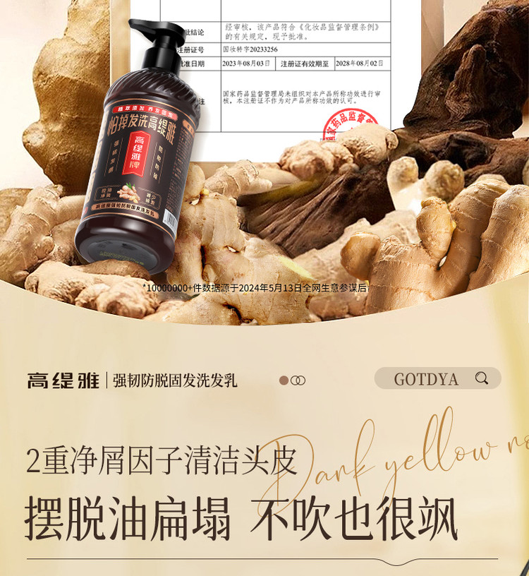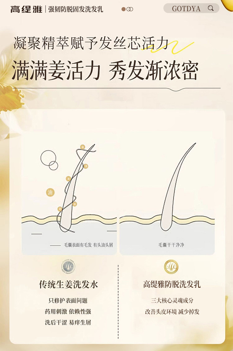 高缇雅 【明星升级款】控油蓬松去屑持证防脱生姜洗发水持久留香修护头皮