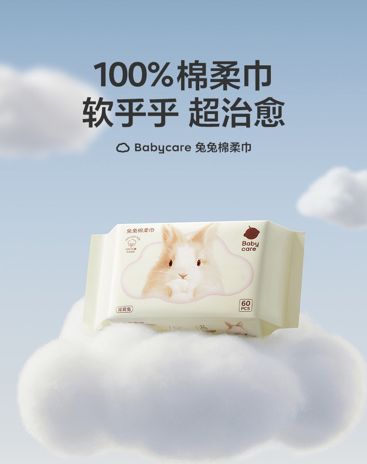 Babycare 【享绵柔巾】小熊巾兔兔巾婴儿干湿两用洗脸巾绵柔巾4包