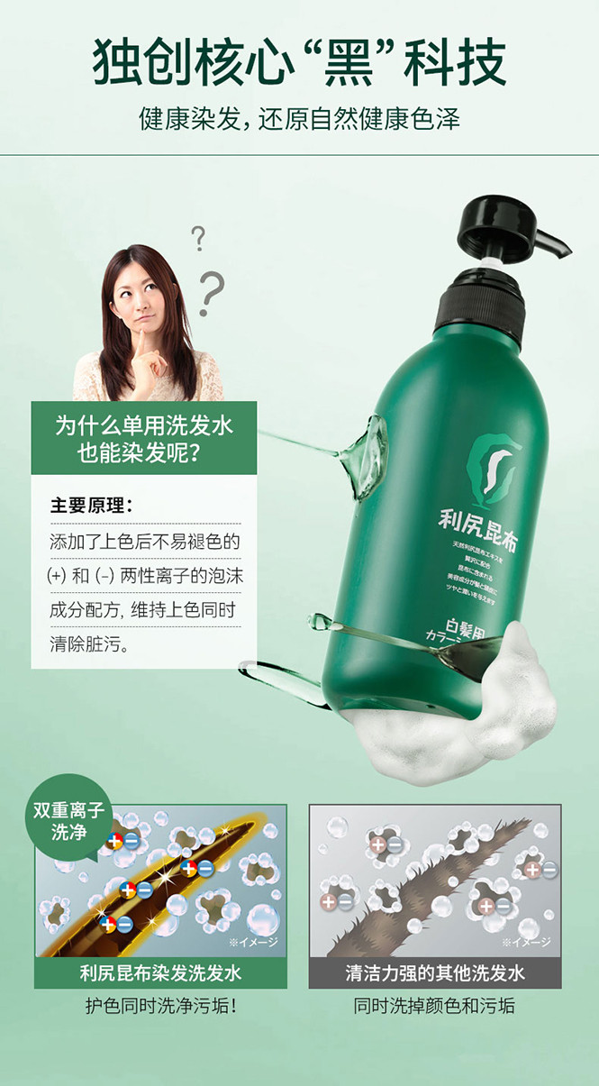 利尻昆布 【新品-加量装】植物天然染发剂洗发水500ml 洗染遮白