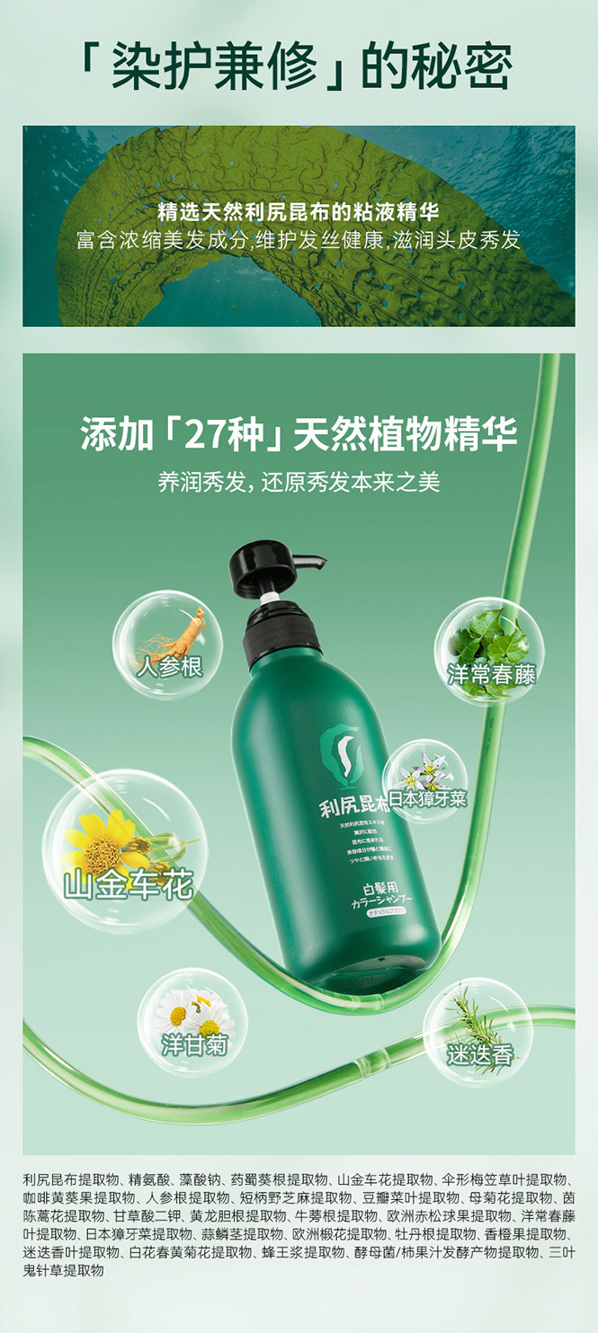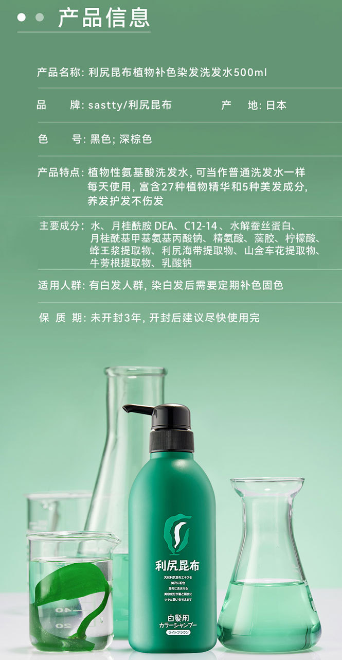 利尻昆布 【新品-加量装】植物天然染发剂洗发水500ml 洗染遮白