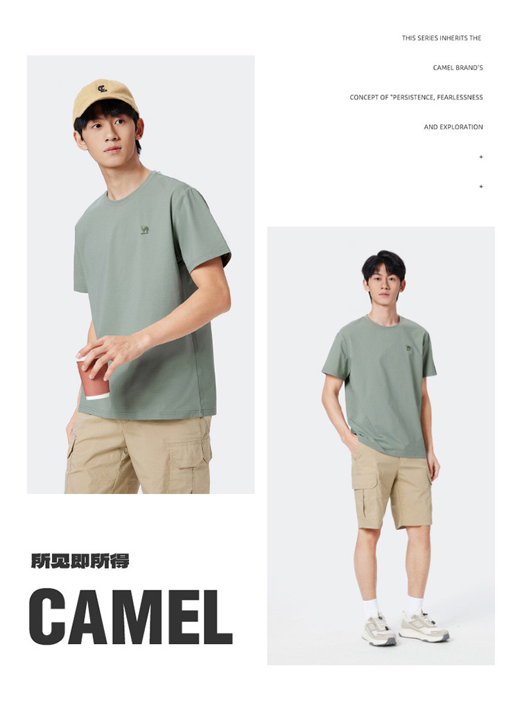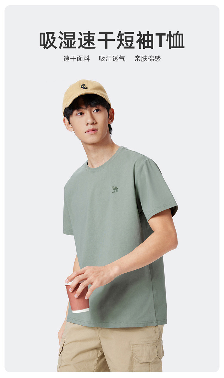 骆驼 2026夏季速干轻薄透气纯色圆领短袖t恤男t恤女情侣款