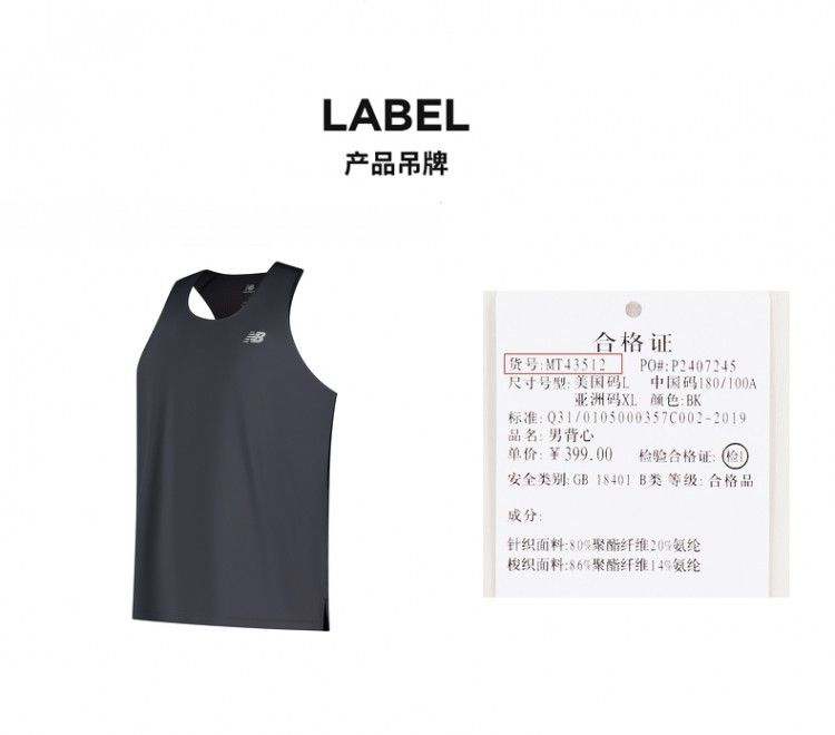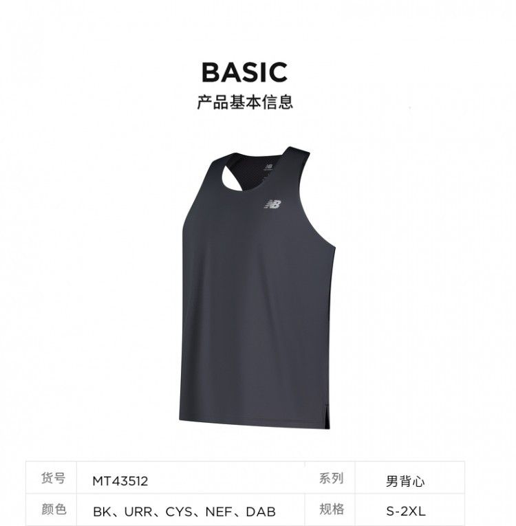 New Balance NB官方正品男士跑步训练健身马拉松田径运动背心MT43512