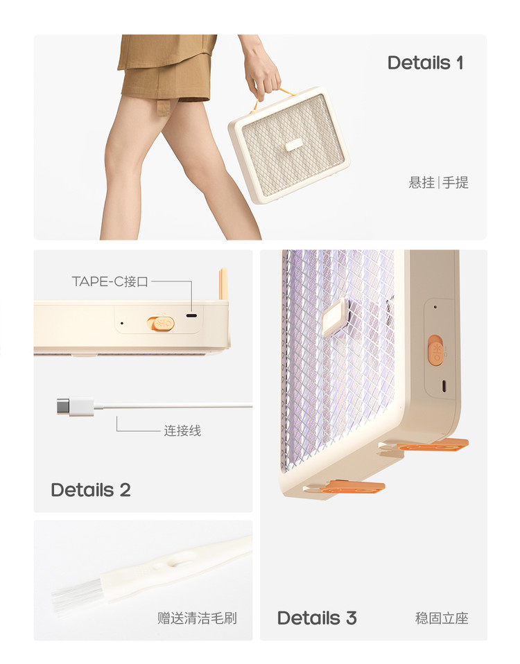 彩虹 电蚊拍灭蚊拍USB充电式苍蝇拍紫光诱蚊灯二合一式物理杀蚊神器