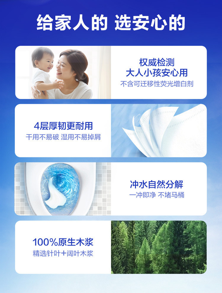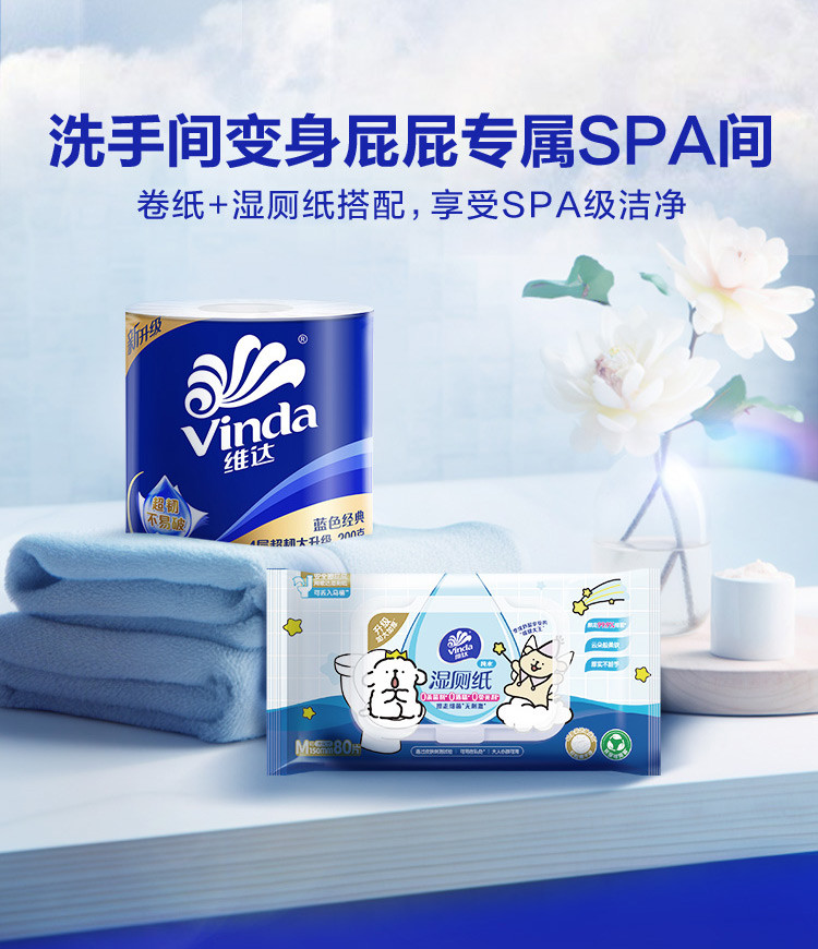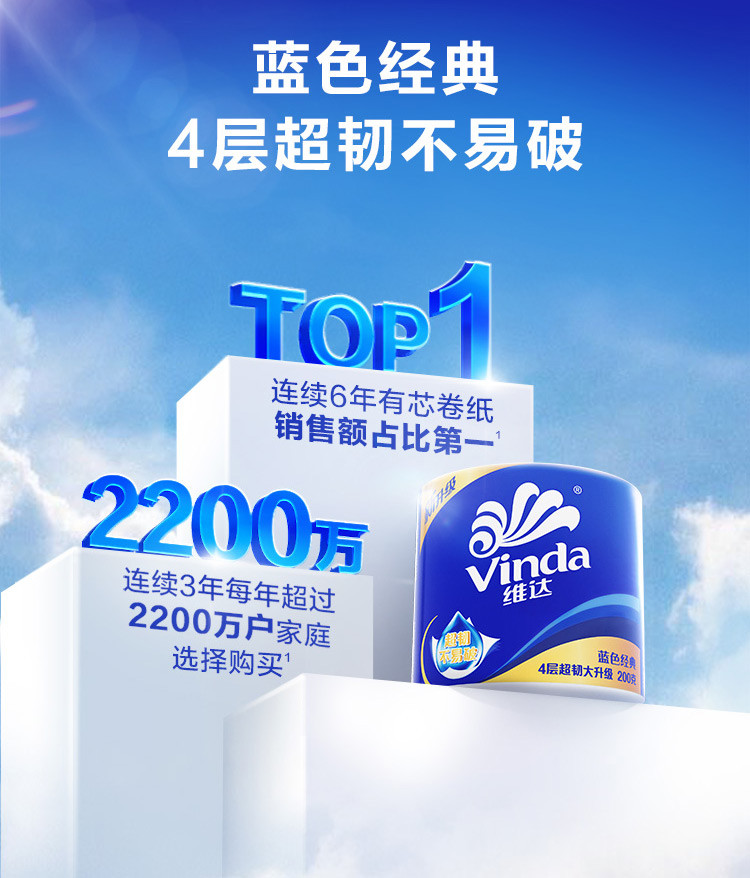 维达 卷纸加厚4层蓝色经典200g20卷有芯卷筒纸卫生纸提装-新旧交替