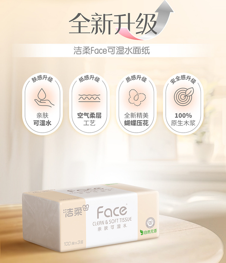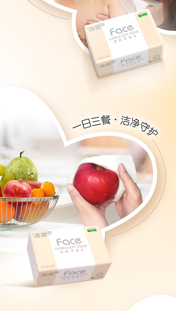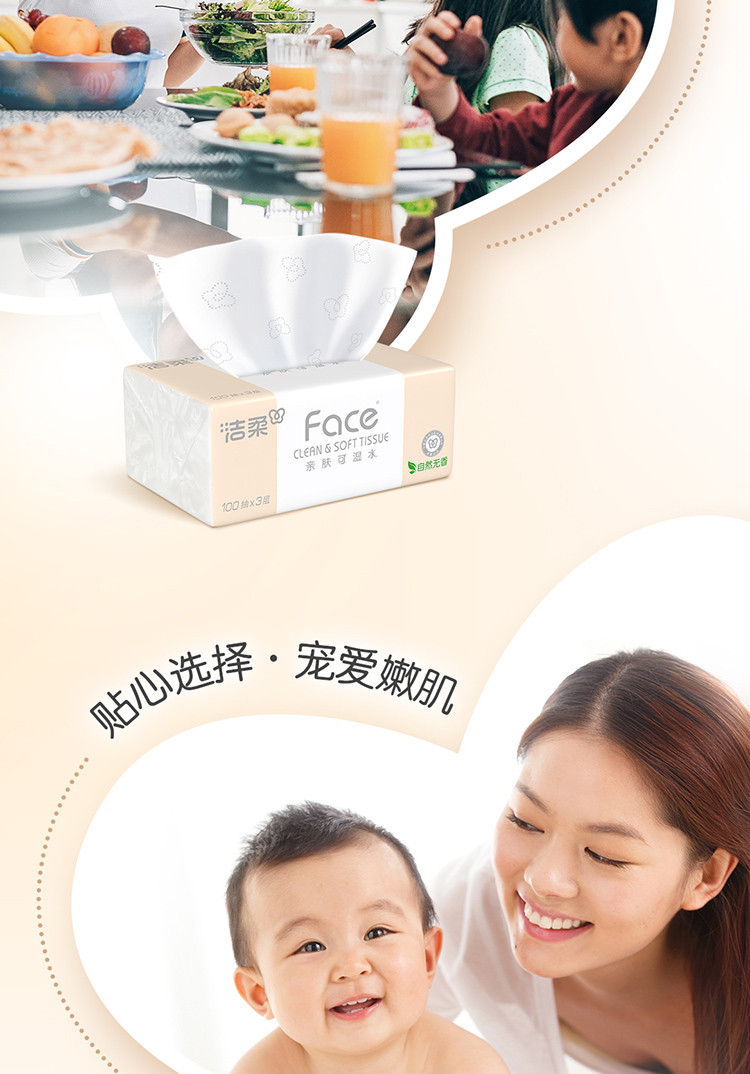 这个纸呢,我们主要是用于日常生活,餐桌上我觉得它不容易掉棉絮,吸水性还是比较强的,嗯,基本上这么多年一直在用face的,无论是它的抽纸还是它的手帕纸,以及它的卷纸,我觉得都还是品质挺不错的
