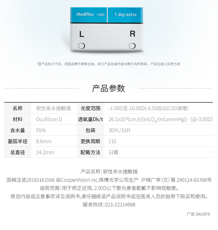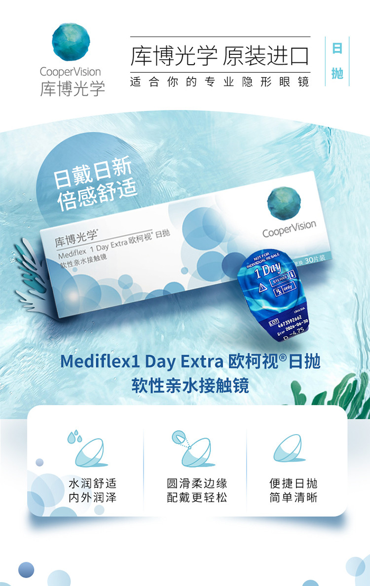 COOPERVISION 库博光学欧柯视30片日抛近视隐形眼镜透明白片